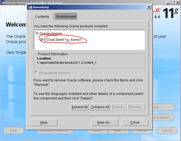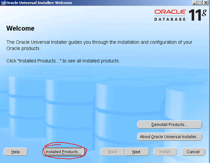 - A Welcome oldlaon az Installed Products gombra kattintva ellenőrizzük, hogy az ORA Client fent van e.