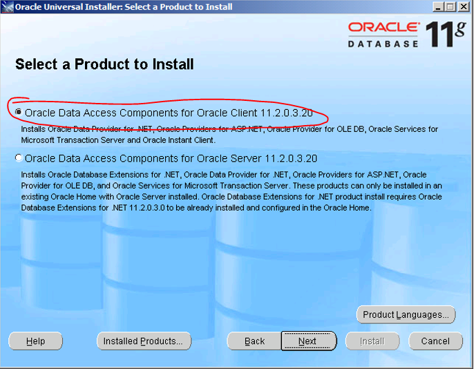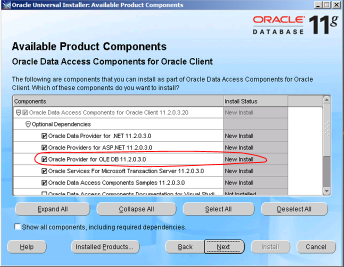 - A további oldalakon hagytam az alapértelemezett beállításokat, majd az Available Product Components oldalon elég kiválasztanai az Oracle Provider for OLEDB 11.2.0.3.0 komponenst.