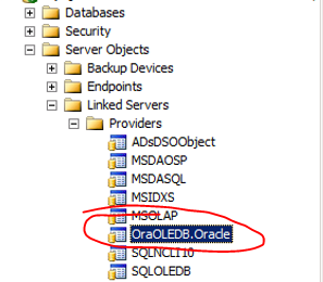 - Nyissunk egy SSMS-t, és ha jól dolgoztunk (illetve az Oracle fejlesztők is ;-) ), akkor az SSMS-ben az alábbi Provider-t fogjuk látni: