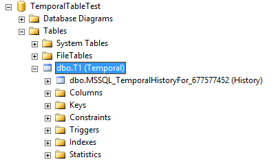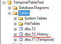 - history_table_id: ez a tábla object_id értéke. Az alábbi lekérdezéssel meg lehet nézni az adatbázisban található összes temporal table-t: