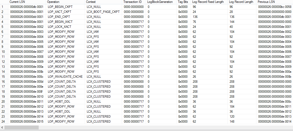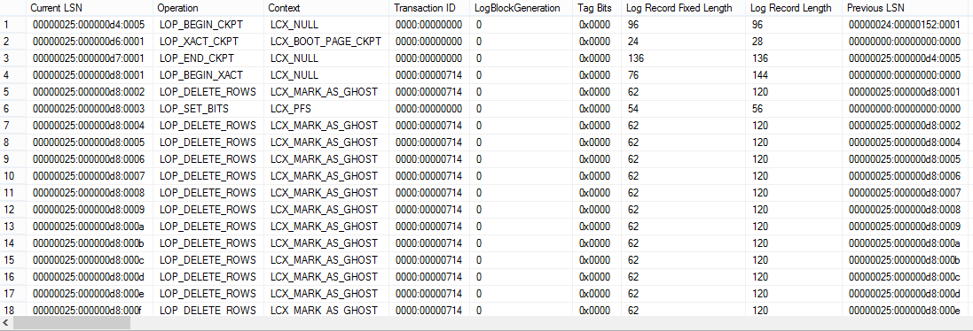 3SELECT * FROM sys.fn_dblog(NULL, NULL);