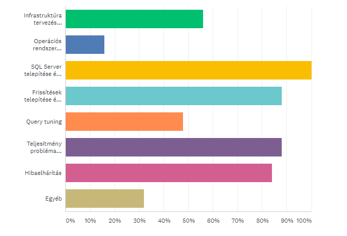 - Teljesítmény probléma okainak feltárása (értsd: hw/sw, lekérdezések, index stratégia): itt 88% gondolta, hogy kell. Ugye ez azért feltételez pár - dolgot: ismerjük a működést és tudunk query-t optimalizálni is :)