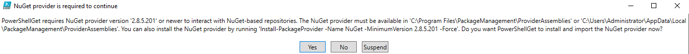 Ezzel elvileg mennie kell, de nem biztos. Ha nincs fent a nuget provider, akkor azt is szeretné letölteni, így jött is egy ilyen gyönyörű értesítés a PowerShell ISE-ben: